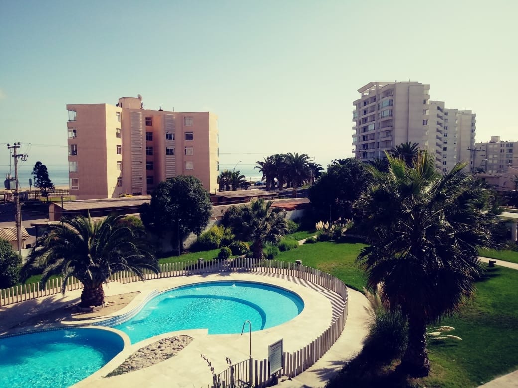 Vid havet, vid stranden, bredvid kasinot Enjoy. Direkt utsikt över havet. Byggnad med alla bekvämligheter, pooler, gym, tvättstuga, 24-timmars portvakt, parkering under tak. Några steg från de bästa restaurangerna, minimarknader, cykelväg och 20 minuter från flygplatsen i Coquimbo. Fullt utrustad lägenhet, med 3 sovrum, för 6 personer. Den har kabel-TV, internet, utrustat kök, jacuzzi i det stora sovrummet, sängkläder och handdukar.