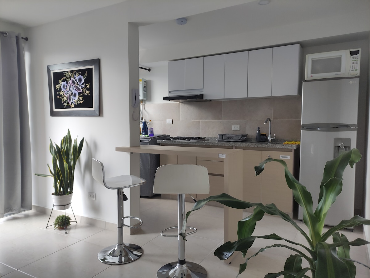 Lägenhet med trevlig atmosfär, perfekt för att koppla av och njuta av underverken i kaffelandskapet, mycket centralt för alla charmigheter som Quindío-avdelningen erbjuder. Rekommenderade aktiviteter för resenärer i Quindio: + Salento + Cocora-dalen + Naturreservatet Acaime + Kaffeparken + Panaca + Arrieros Park + Quindio Botaniska trädgårdens fjärilspark - Calarca + Utsiktspunkten Quindio - Filandia + Naturparken Los Nevados