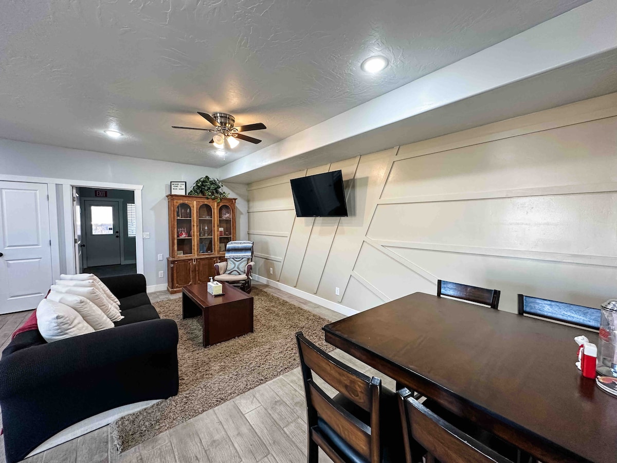 Luta dig tillbaka och koppla av i denna lugna, eleganta privata 2 sovrum källarsvit i La Verkin, UT — 20 minuter till Zion National Park. Vacker utsikt över Red Rock. Livsmedelsbutik, bensinstation i närheten. Bra uteplats för att njuta av din kopp Joe på morgonen eller använda grillen för att göra fantastiska måltider efter en dag av vandring och utforskning. Kom och koppla av i bubbelpoolen medan du njuter av utomhuselden. Bekväma sängar och sängkläder väntar när du är redo att gå till sängs för natten.