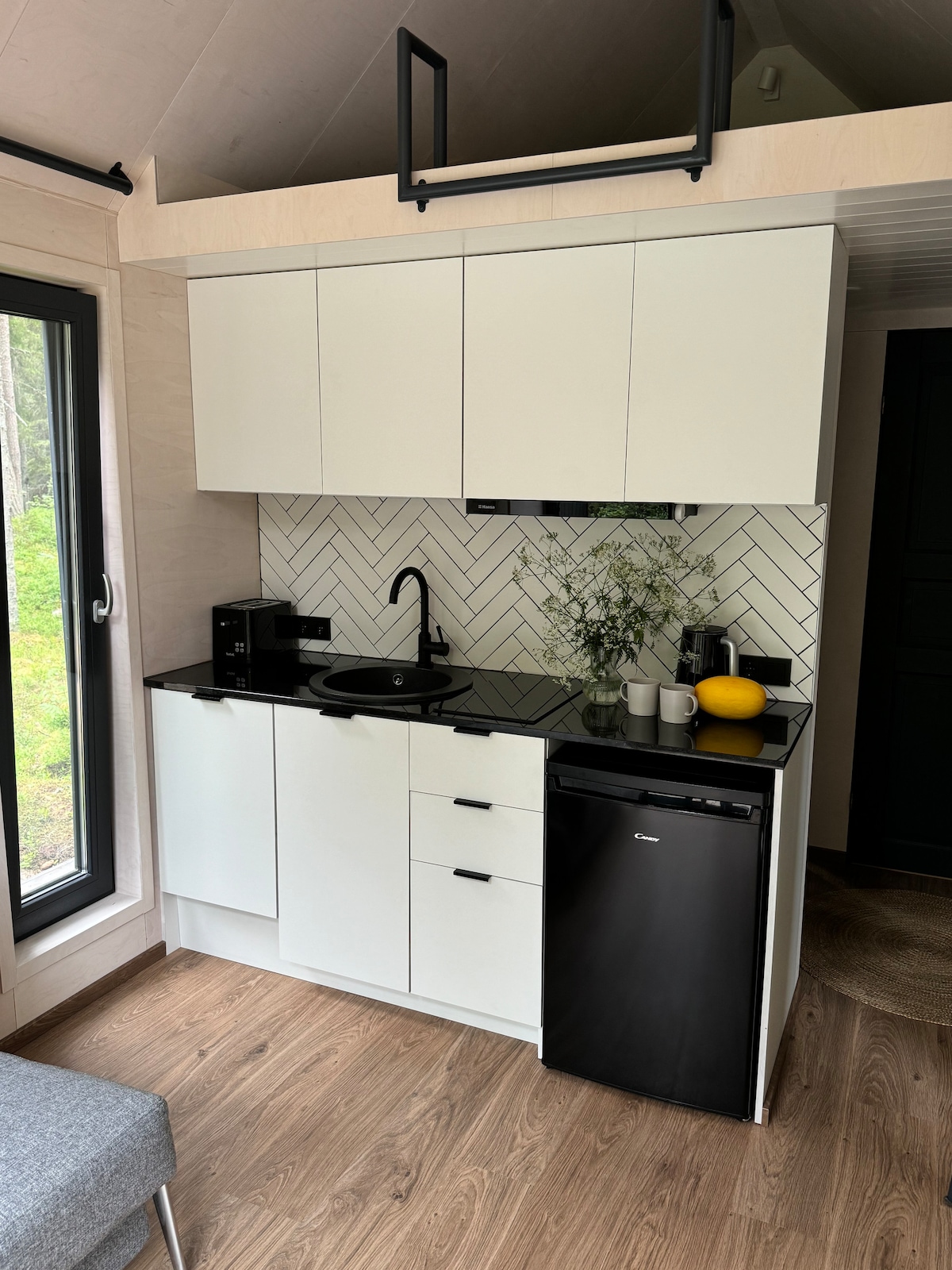 Detta kompakta, moderna minihus ligger på Estlands västkust. Avsett för personer som vill njuta av en naturlig tillflyktsort utan att ge upp moderna bekvämligheter. Till huset hör bastu, bubbelpool, dusch med uppvärmda golv, toalett, öppet vardagsrum och sovplats på "vinden". Huset är utrustat med WiFi, TV med Netflix-åtkomst, kaffemaskin etc. Värme/kyla tillhandahålls av en integrerad luftkonditionering. Huset kan avnjutas året runt.