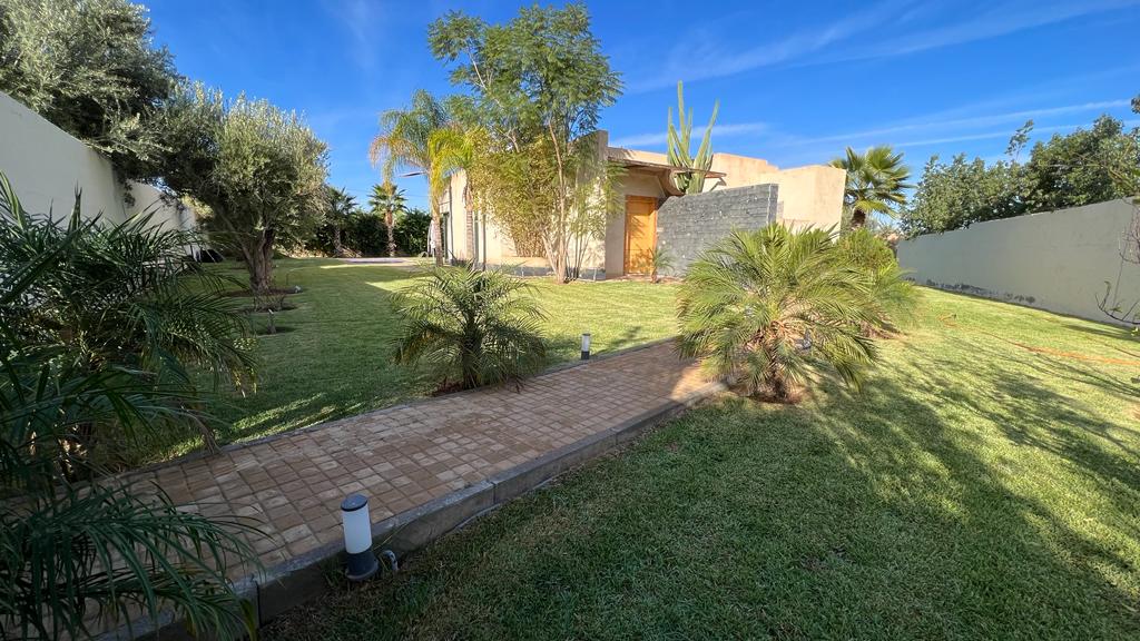 Denna lugna lyxvilla ligger 18 km från Marrakech på RN8 och erbjuder en avkopplande vistelse för hela familjen. Ny villa på 450 m2 och trädgård på 2500 m2. Inredd med mycket smak och utrustad med en uppvärmd pool på 18x6, reversibel luftkonditionering, 6 sviter med 6 badrum, Hammam, petanque-bana, bordtennisbord, tennisbanor. WIFI-anslutning med fiber. Personal för köket (tillval) Underhåll av hus, trädgård och pool ingår.