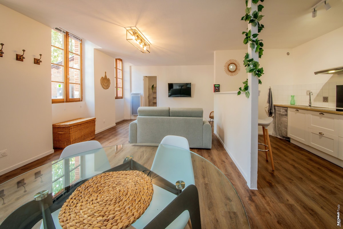 Lägenheten ligger på Place d'Hautpoul (Rådhustorget), mitt i hjärtat av Gaillac — en idealisk plats för att utforska staden. Gaillac är en livlig stad med massor av evenemang, restauranger, butiker, stormarknader och kulturella platser. Tyvärr är boendet inte tillgängligt för personer med nedsatt rörlighet.