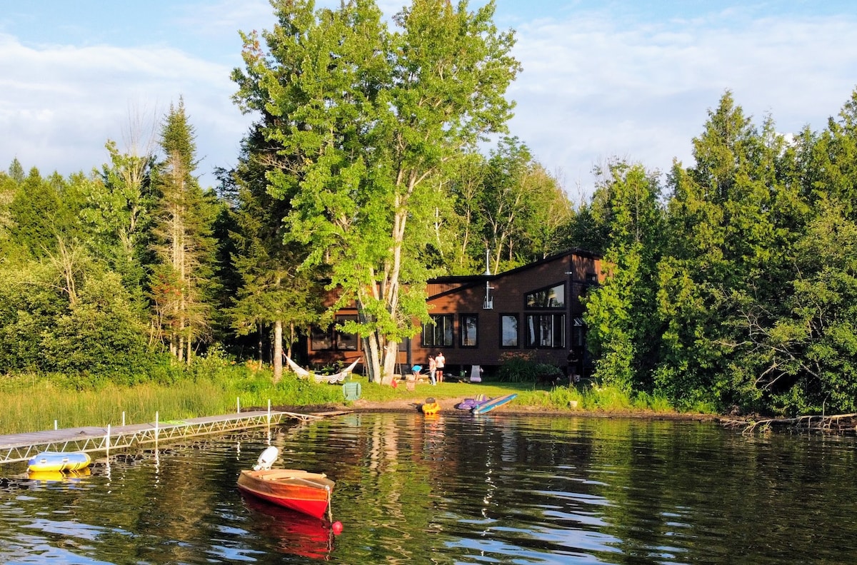 Ta med hela familjen till vår vackra stuga. Sjön är orörd , klar och perfekt för bad. Din egen privata strandpromenad. 1 timmes resa från Ottawa och 2 timmar från Montreal ,bara några minuter från byn Gracefield. 20 minuter från en av de högsta skidbackarna i östra Kanada, Mont st Marie ,som på sommaren har en downhill cykling , jakt, fiske vattenskidåkning, vandring, festivaler , rodeos och 3 lokala golfbanor. TV, höghastighets Wi-fi, 3 kajaker, paddelbåt, 5 parkeringar, mobilmottagning