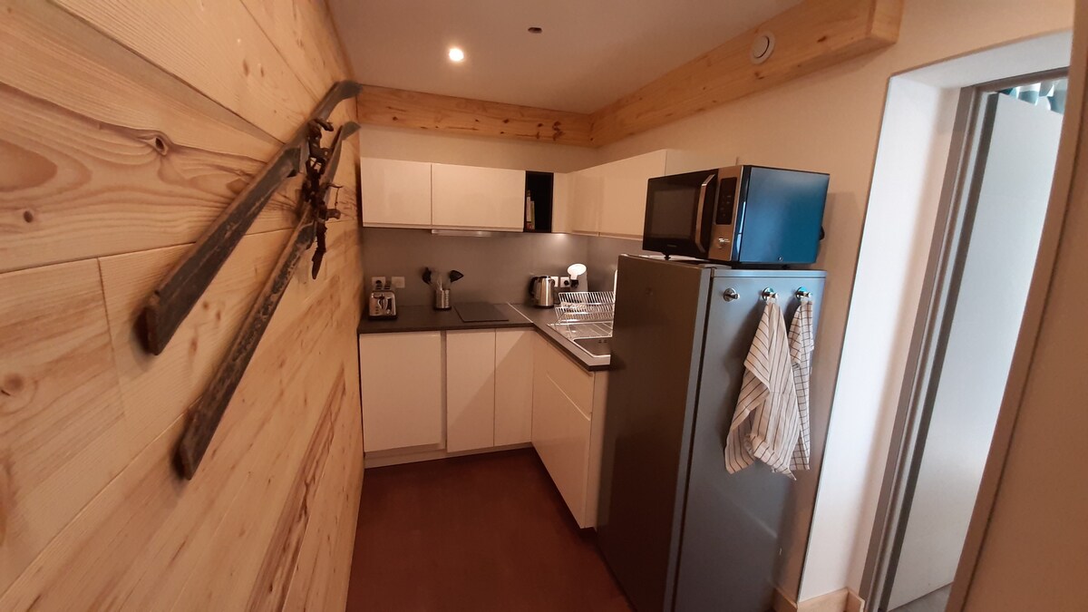 Nybyggd modern bottenvåningsvit i lokalt familjehus med solig uteplats/trädgård/grill tillgång i uppförsbacken av den lilla lugna hameau Ventelon. Ett sovrum med dubbelsäng och en våningssäng med extra enkelsäng/soffa i vardagsrummet (babysäng/barnstol finns också) med utsikt över de höga topparna. Fullt utrustat kök med induktionsmatlagning/ugn. Perfekt bas för direkt skidåkning/vandring/skärmflygning tillgång till den fantastiska terrängen på den soliga sidan av dalen.