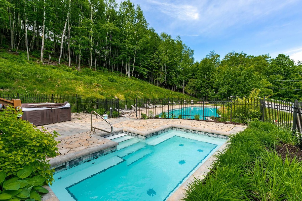 POOL och BUBBELPOOL stängd till juni 2026 Välkommen till Le PanoramiK, en fantastisk hörnuthyrning mitt i Mont-Tremblant gamla byn. Denna vackert designade stuga har naturlig skönhet och moderna bekvämligheter för alla gäster att njuta av. - 5 minuters bilresa från skidorten Mont-Tremblant - Gratis busshållplats i närheten - Gratis parkering/Wifi - Netflix/prime video (egen prenumeration krävs) - Privat balkong med matbord - Delad laudomat i källaren ($)