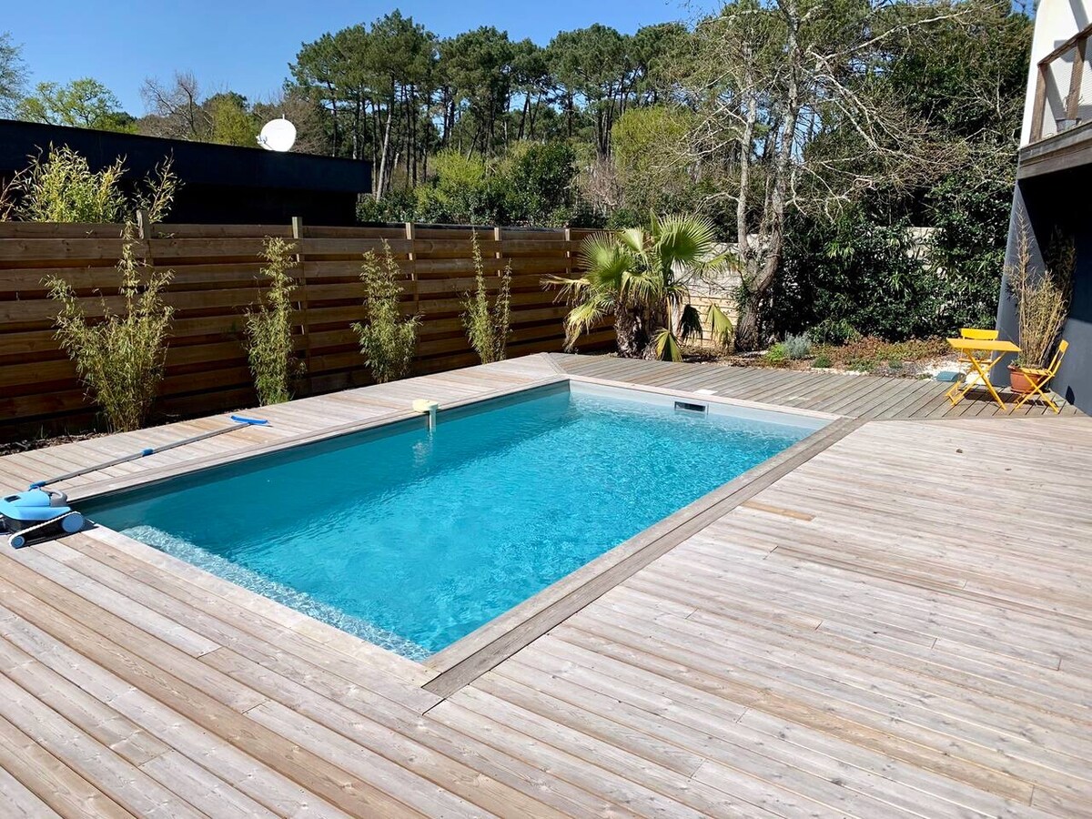 Arkitektvilla erbjuds för 10 bäddar, luftkonditionerad. Beläget mindre än 5 minuters promenad från de lokala butikerna och stränderna i Bassin d'Arcachon (byn Grand Piquey). bil behövs för att åka till havsstränderna på 5 min (15 minuter från centrala Cap Ferret) Uppvärmd 15 m uppvärmd pool från 15 maj till 15 september beroende på väder- och väderförhållanden (före och efter denna period är den övervintrad och/eller täckt) en riktig kokong av grönska