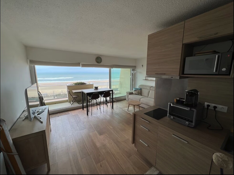Renoverad lägenhet typ T2 (litet separat sovrum) på 25 m2 med cykeluthyrning, på första våningen med havsutsikt. Bostadsområdet "Pierre et vacances" med pooler, direkt tillgång till stranden (50 m) och nära till bekvämligheter. I boendet finns en diskmaskin och en tvättmaskin, sängkläder och handdukar finns också till ditt förfogande. Du kommer att njuta av en stor balkong västerut mot havet.