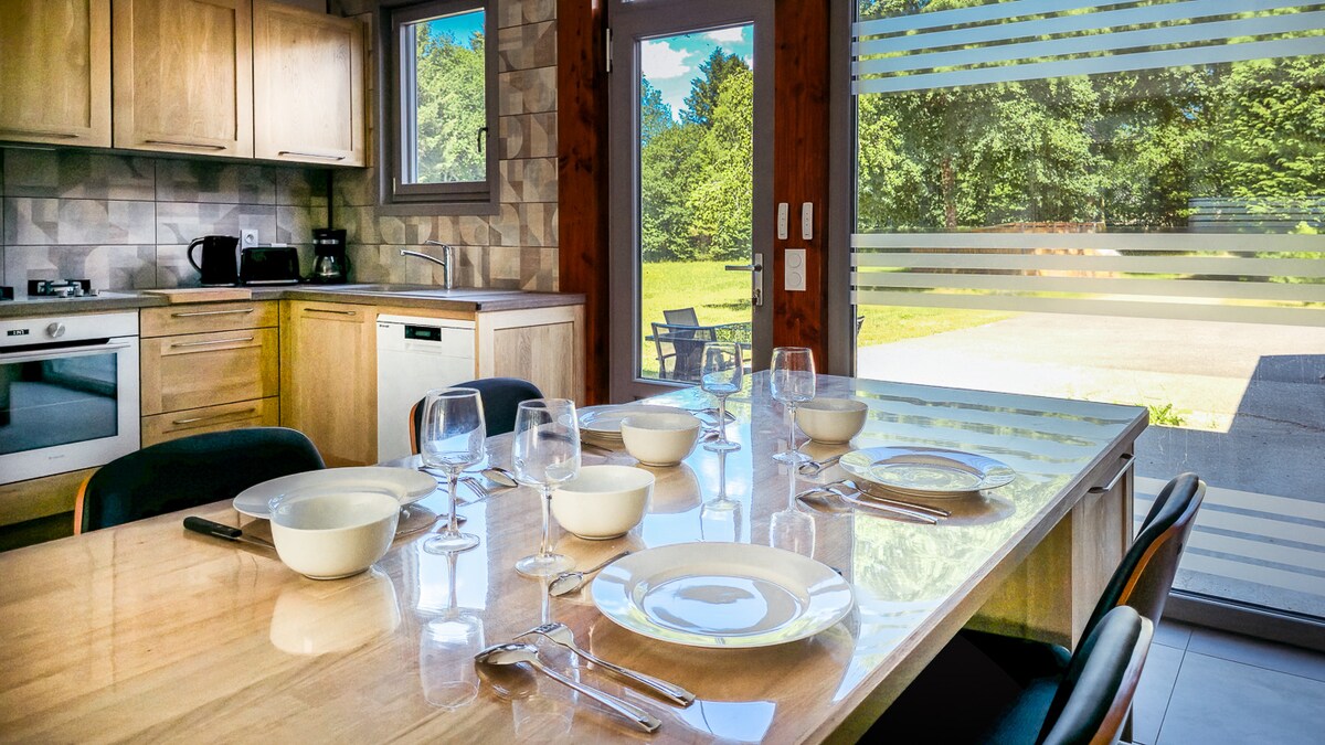 Upptäck En Haut du Paradis, en modern 94 m² miljö badad i ljus☀️, idealiskt beläget i Sadroc, i hjärtat av Corrèze. Med två sovrum med dubbelsäng🛏️, ett fullt utrustat kök och ett privat spa med 5 platser och spektakulär utsikt är det det perfekta stället att koppla av i avskildhet. Njut av lyxig komfort: luftkonditionering❄️, specialdesignade möbler, elegant badrum och en stenmur som ger charm och karaktär.