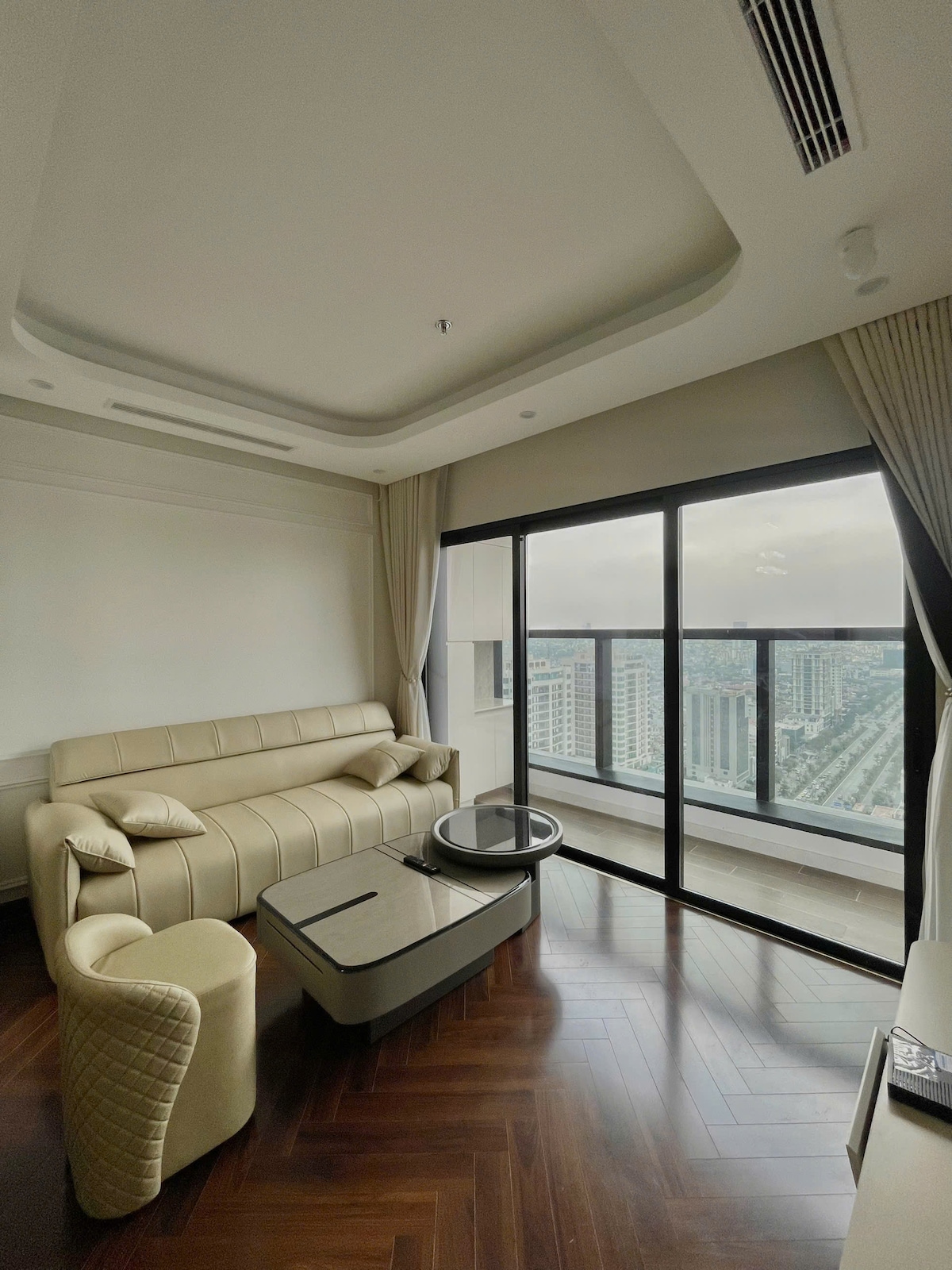 LÄGENHET 🏡 ATT HYRA – DIAMOND CROWN HAI PHONG: Högklassigt och modernt vardagsrum. Storlek: 72 m² 2 sovrum, 2 badrum, 2 balkonger, vardagsrum, kök. Fullt av högklassiga möbler, gäster behöver bara ta med sina personliga tillhörigheter direkt. Hög våning, fin utsikt över Le Hong Phong street, öppet utrymme, tyst. 🔥 Höjdpunkter: Lämpligt för familjeresor, matresor eller affärsresenärer. Beläget i den lyxigaste byggnaden i Hai Phong, bekvämt att röra sig och njuta av de omgivande verktygen