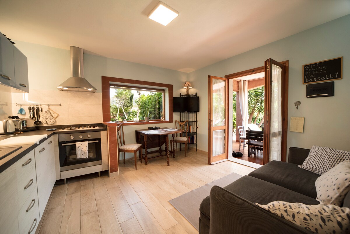 Lägenhet för 3/4 personer med egen ingång och för användning av gäster. Charmig utsikt över bukten Porto Azzurro, ca. 1,5 km från havet. Huset är omgivet av grönområden 300 meter från byn Capoliveri. Tvårumslägenhet på bottenvåningen bestående av ett sovrum med dubbelsäng, vardagsrum med bäddsoffa och satellit-TV, pentry, badrum med dusch, stor balkong, uteplats och trädgård med möjlighet till uteservering, privat parkering, grill, myntdriven tvättmaskin.