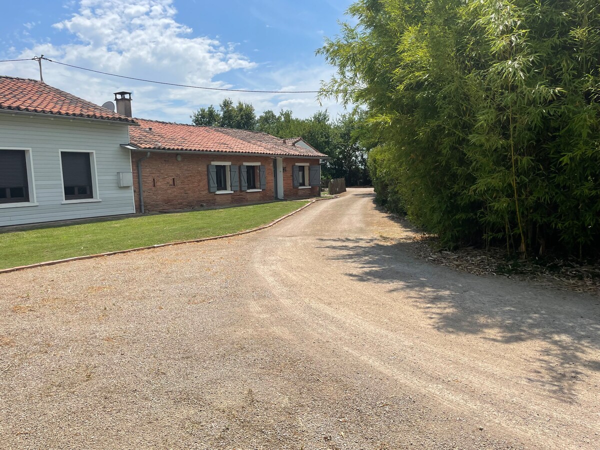 Denna 75 m² lägenhet/hus ligger mellan stad och land och har ett helt öppet vardagsrum med utrustat kök och vardagsrum. Du kan njuta av den stora 30 m2 terrassen, bara för dig. - 3 sovrum med 3 queensize-sängar - Separat ingång, parkeringsplatser - Lakan och handdukar inkluderat Tid med bil - Lokala butiker: 3 min. - Montauban centrum: 6 min - Montauban tågstation: 6 min - Albasud-området: 6 min - Motorväg: 10 min