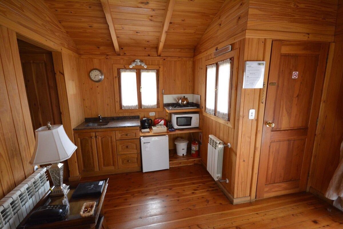 VÄLKOMMEN!! Komplexet har 5 rustika stugnar i patagonisk stil som är helt oberoende och separata. Var och en är utrustad för komfort för upp till 4 passagerare. Individuell parkering i anslutning till varje stuga. En privilegierad utsikt över sjön Argentino, som ligger 200 meter bort. Vi är långt från affärscentret (3,2 km) och mindre än en timme från Perito Moreno-glaciären. Perfekt för älskare av självständigt boende, frisk luft, lugn och den vilda patagoniska miljön.