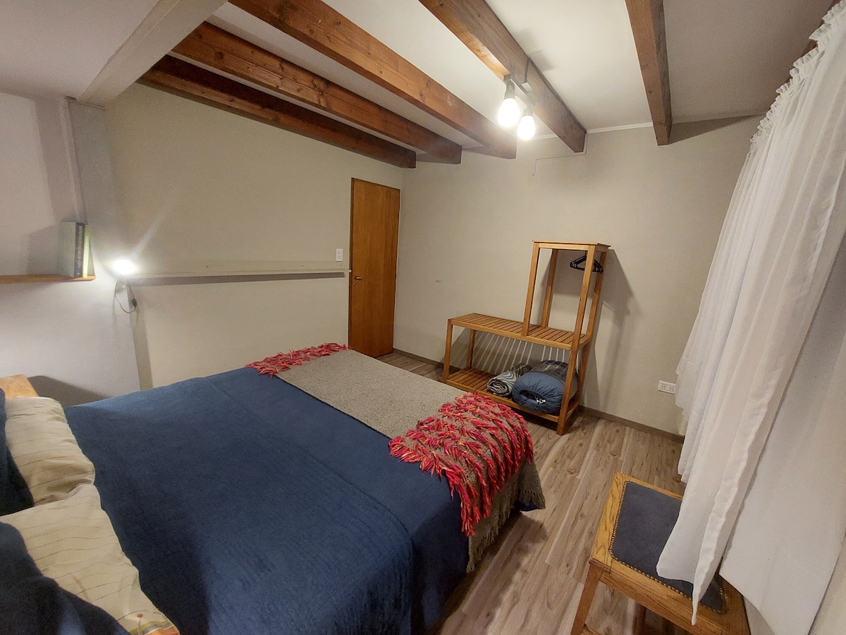 Encantadora cabaña de 70m2 completamente equipada. Cuenta con living-comedor, cocina y baño privado con ducha. Además, una habitación con cama matrimonial queen size, TV y calefactor a gas natural. Posee calefacción central por aire y fogonero exterior para hacer asados. En el living se puede adicionar una cama individual.