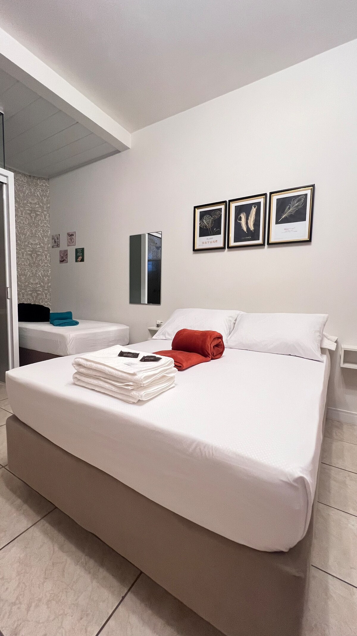 Studio på bottenvåningen med 25 m², belägen inuti en bostad. Tillgång till studion är genom garaget: när du kommer in hittar du en dörr som leder till husets inre hall; precis till vänster är den privata ingången till studion, allt på bottenvåningen. Garaget är stängt, rymligt och gratis. Utrymmet har en dubbelsäng, eget badrum och kompakt kök utrustat med en liten elektrisk spis och ugn, minibar, grundläggande redskap, samt TV, delad luftkonditionering och exklusivt Wi-Fi.