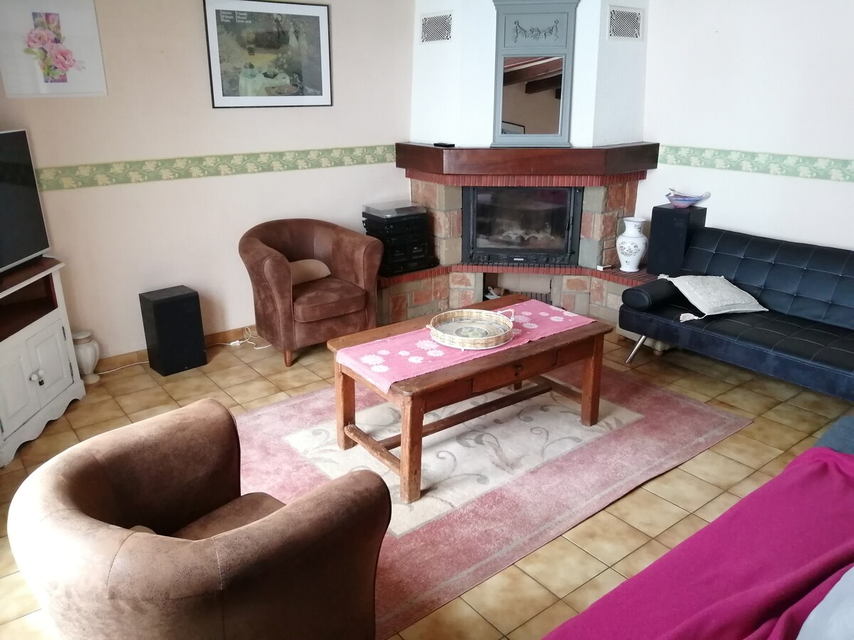 Stort hus (300 m2) i en grön miljö utan grannar eller visavi. Detta trevliga hus består av en bottenvåning: entré med stor garderob, kök med öppen spis + tillgång till terrassen, stort vardagsrum/matsal med öppen spis, 2 sovrum med dubbelsängar, badrum och separat toalett. På övervåningen finns ett litet vardagsrum med en pelletsbrännare som ger tillgång till en mezzanin med 2 enkelsängar och 2 stora sovrum med dubbelsängar och badrum med toalett