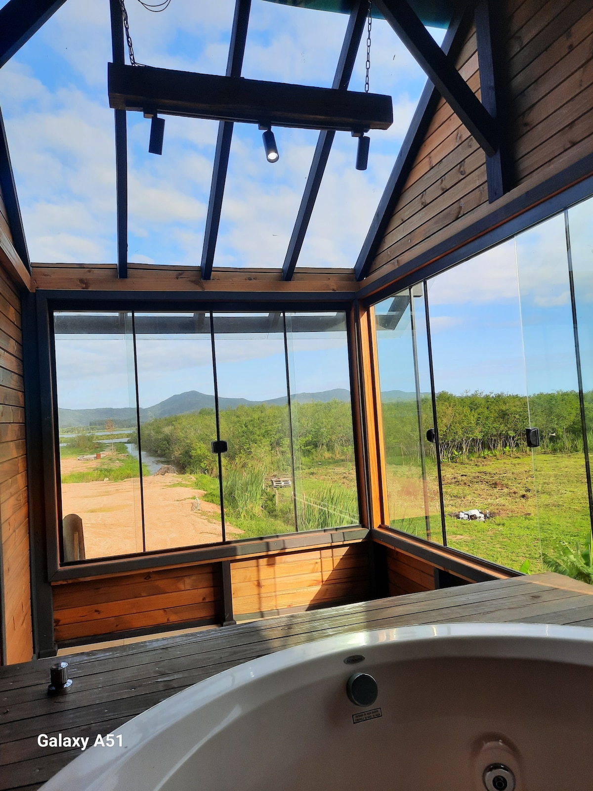 Modernt och välmöblerat hus med fantastisk utsikt över lagunen. Stor svit, queen-size-säng, sängkläder och handdukar, uppvärmd jacuzzi, bubbelpool, kromoterapi, bubbelsystem, öppen spis, luftkonditionering, Wi-Fi, 32-tums-TV, utrustat kök och balkong med grillplats. Beläget på en 1 hektar stor fastighet vid sjön. Erbjuder SUP, kajak, sandplaner, brygga för båtar, vattenskoter, fiskedamm eller ett vackert bad i lagunen framför huset. Perfekt för oförglömliga stunder!