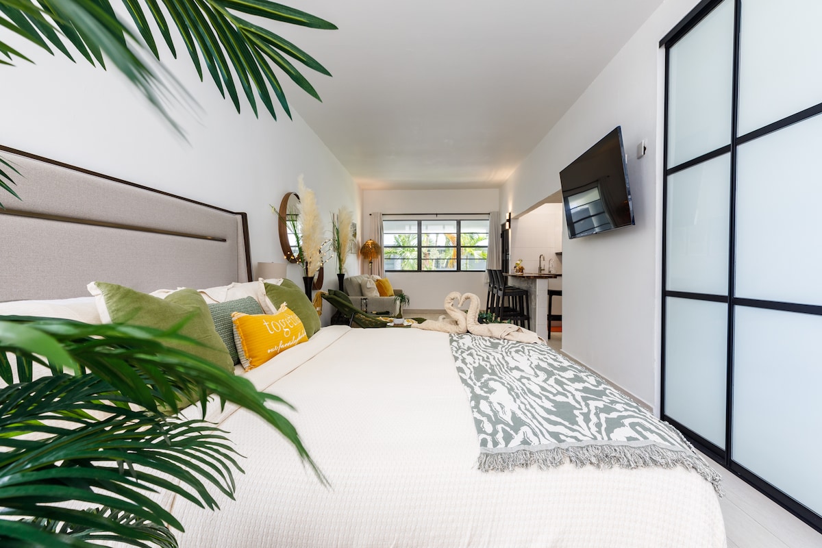 Vad skulle kunna vara bättre än att gå ut genom din dörr och vara bara några steg från vattnet direkt på Ashford Ave, detta utmärkta läge har allt! Denna solfyllda studiolägenhet ligger mellan stranden och lagunen och har allt du behöver med inbjudande utrymmen, mjuk jordnära inredning, ett fullt utrustat kök och en lyxig kingsize-säng. Gamla San Juan, restauranger och butiker ligger bara några minuter bort eller lev din bästa strandlivsstil med kajakpaddling, paddleboarding och så mycket mer precis utanför dörren!