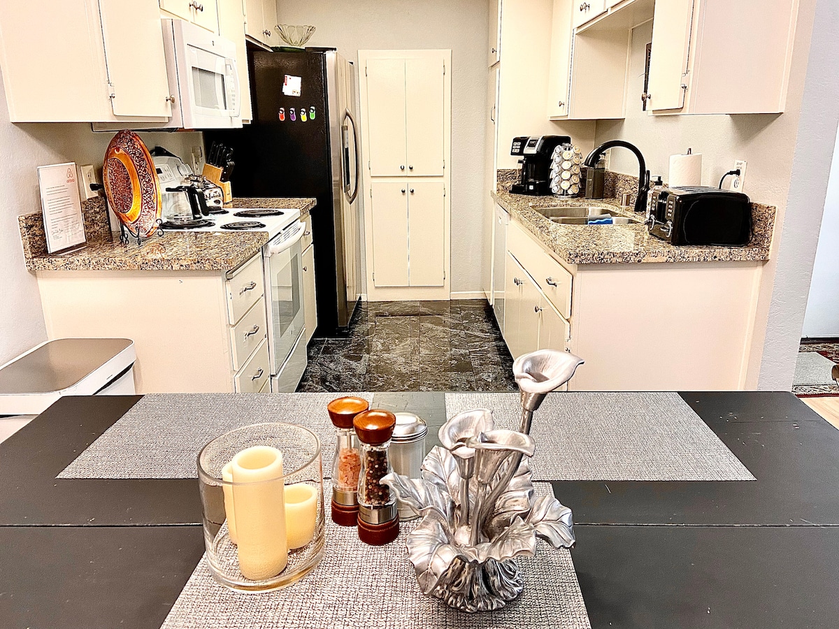 Välkommen till Karma Condo! KÖK Kylskåp, spis, ugn, diskmaskin, InstaPot, förvaring,☕🍳🍲🍽+MER VARDAGSRUMMET 2 soffor, 🖥 📽+program: ENDAST PRIME BADRUM 1 badrum i varje sovrum SOV 2 sovrum med queensize-sängar KÖRSTRÄCKOR 30 minuter från Laguna 🏖 30 minuter från Disneyland 15 minuter från Santiago Canyon 6 minuter från Whitting Wilderness 1 minut från 🛒(Sprouts, TJMax, CVS, Ralphs, Starbucks) Bredvid Saddleback Church +Mer