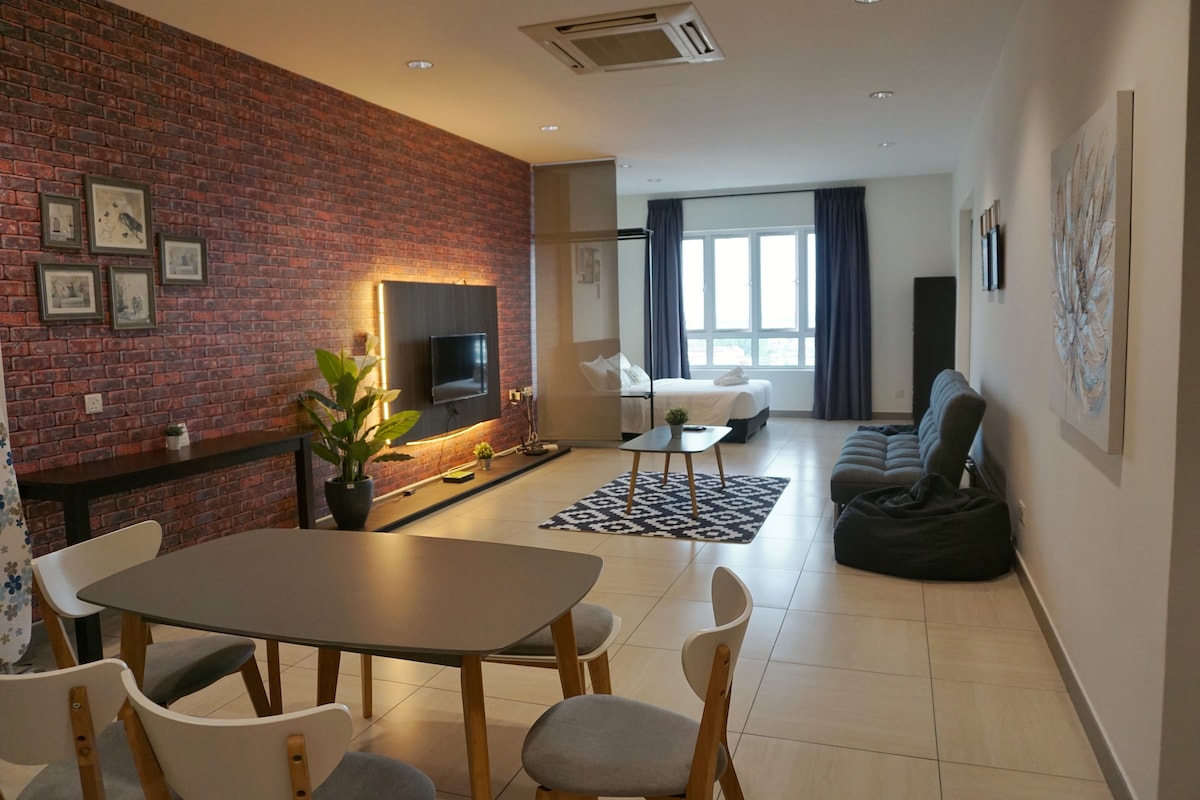 Vårt boende ligger mitt i Ipoh Town. Inom gångavstånd eller kort bilresa till många kända väggmålningar, restauranger och sevärdheter. 1 privat säker parkeringsplats finns i samma byggnad. Det finns offentlig parkering tillgänglig i källaren med avgifter RM3 per inträde för ditt extra fordon. Incheckningstid: 15:00 Utcheckningstid: 12:00