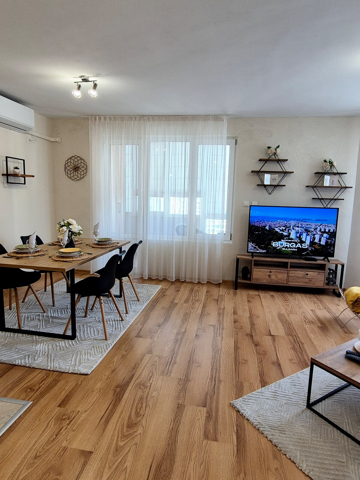 Njut av en elegant upplevelse på detta centralt belägna ställe. Settle in the Sea Garden of Burgas, ett steg från gågatan Bogoridi och från stranden. En helt ny, smakfullt utformad lägenhet, som du inte kommer att vilja lämna. Du kommer att kunna njuta av en 5-stjärnig semester och besöka de bästa restaurangerna som ligger i omedelbar närhet. Bättre än Home och mer att föredra än det livliga boendet. Privatliv och avkoppling!