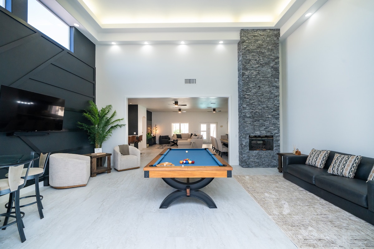 ⭐️ 3000 kvm med lyxig design och inredning ⭐️ Minuter till Riviera Marina och Downtown ⭐️ King Size-sängar ⭐️ Hängmatta, spel och puttinggreen ⭐️ Golfbana och Mountain View's ⭐️ Beläget på andra green Vårt totalrenoverade semesterhus inomhus-utomhus är en sann upplevelse i Lake Havasu City Nästan 3000 kvadratfot och plats för 14 gäster, The Clubhouse ser ut som en 5-stjärnig resort, och känns som ett hem skapat med kärlek. Bekvämligheter inkluderar pool, bubbelpool, hängmatta, putting green och eldstad.