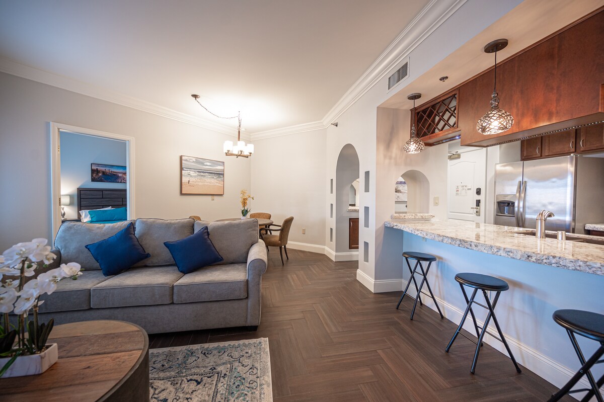 Rymlig lägenhet vid poolen belägen i Viera-komplexet. Fullt möblerad, 2 cal-king sängar, queen bäddsoffa och fullt utrustat kök. Live 4K-TV, Netflix och Prime Video ingår, tillsammans med supersnabbt internet! Gå direkt till poolen och sjön/byn från din privata uteplats. Njut av butikerna/restaurangerna precis utanför byggnaden och den säkra och kompletterande parkeringen inne i byggnaden! Ägare! (Certifierad Superhost!)