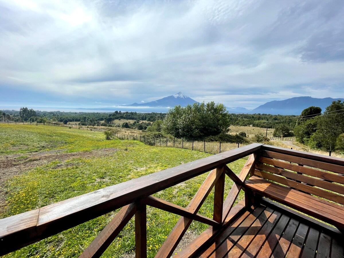 Maravillosa cabaña con vista al volcán y bosque
