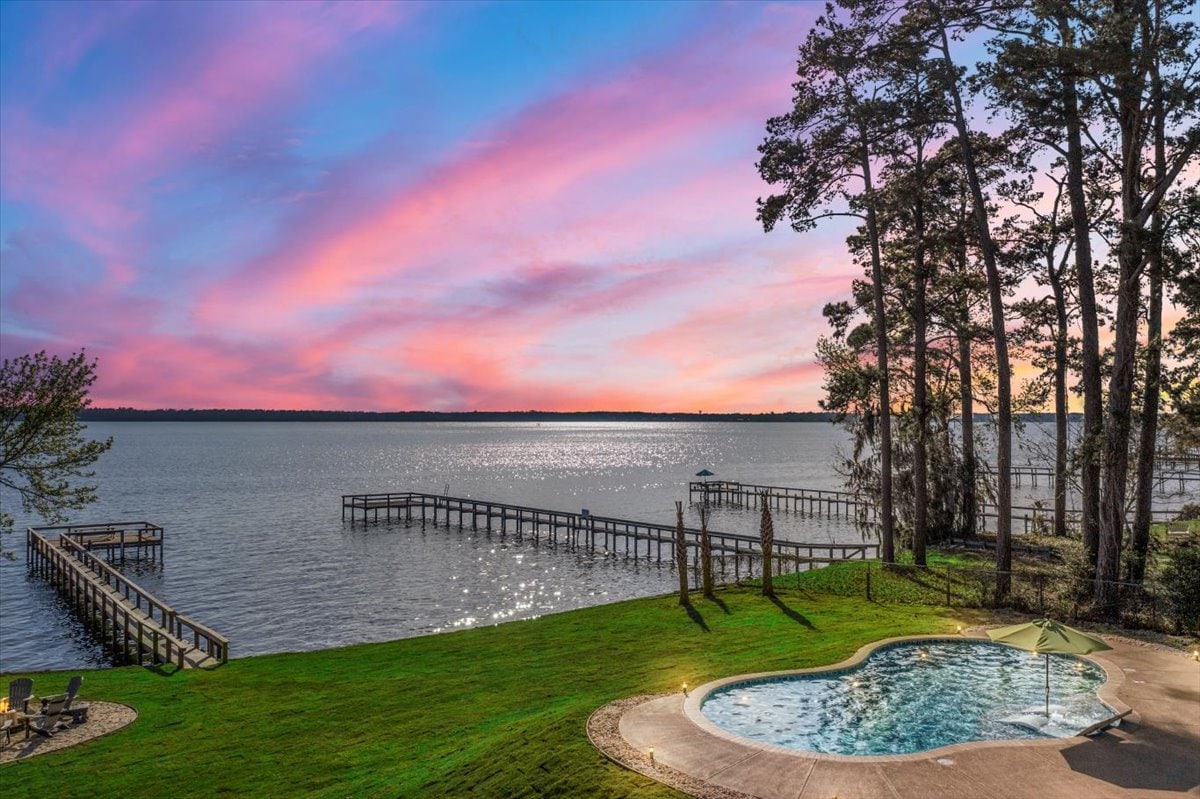 Fantastiskt lyxigt timmerhus vid Lake Marion, med en privat fiskebrygga, båtbrygga, helt ny saltvattenspool, bubbelpool och mycket mer. Denna specialdesignade tillflyktsort erbjuder 3 rymliga sovrum, ett loft och 2 eleganta badrum – ett med ett badkar med tassar och separat toalett. Njut av matlagning och underhållning på den stora avskärmade verandan med en anpassad 12-tums utomhusbar. Bara 6 minuter från I-95, denna fridfulla tillflyktsort vid sjön blandar rustik charm med exklusiv komfort.
