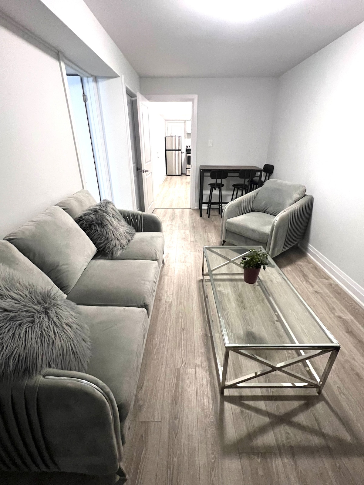 Välkommen till New Toronto! Parkeringsplats på uppfarten ingår bredvid ingången. Stor – Mysig lägenhet på nedre våningen i en by vid sjön, Lake Ontario ligger i slutet av gatan. Vacker utsikt över Torontos centrum, Fullt utrustat kök med spis och ugn. Stort matrumsbord. Bekväm L-formad soffa. Ett sovrum med dubbelsäng. Tvättmaskin, torktumlare, tvättstuga. Wifi Netflix, Prime video, Boka en månad eller längre , ta med ditt husdjur.