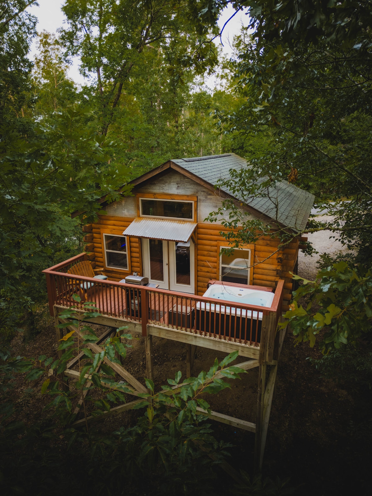 Robin's Nest Cabin ligger i Hot Springs, Arkansas. Den är rustik på utsidan men ändå fylld med moderna bekvämligheter. Njut av skogsutsikt medan du kopplar av i bubbelpoolen eller luta dig tillbaka vid eldstaden och njut av s'mores och din favoritdryck. Fastigheten är också omgiven av skogiga stigar som leder till en vik vid vattnet vid Lake Hamilton. Kajaker är tillgängliga för användning i mars.-Okt. Robin's Nest är perfekt för en romantisk parresa och nära till allt i historiska centrala Hot Springs!