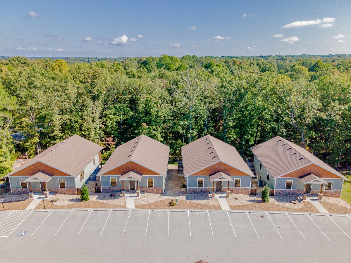 Vårt 2 sovrum/2 badrum ligger på Back 40 trail i Bella Vista och inom några minuter från Little Sugar och Blowing Springs trails. Det ligger i de höga tallarna inom en privat cul-de-sac för massor av extra gratis parkering. Det inkluderar täckt parkering och en hundvänlig inhägnad på baksidan. Det är perfekt för en semesterresa för att utforska vandrings-/cykelleder, restauranger i centrum och/eller ett antal andra attraktioner som Northwest Arkansas har att erbjuda.