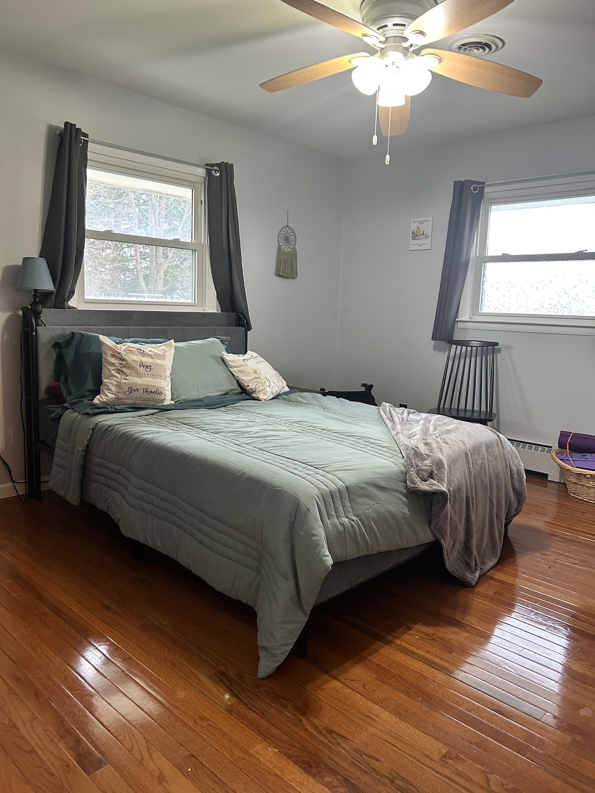 Lugnt sovrum med dubbelsäng i Amish-området.