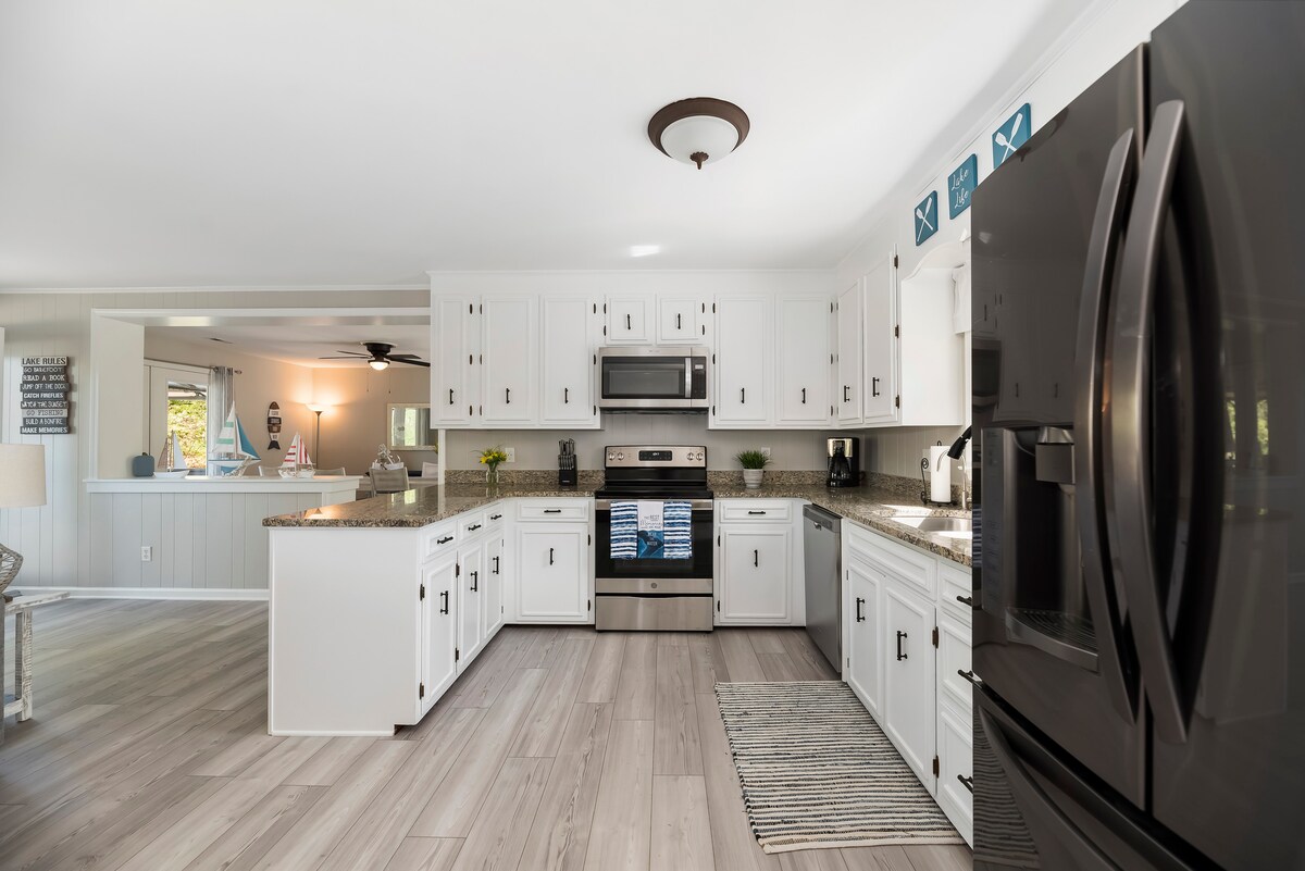 The Cottage in the Cove är ett charmigt boende med 3 sovrum 1 1/2 badrum vid Lake Norman. Denna varma och mysiga stuga har nyligen renoverats samtidigt som den behåller sin charmiga karaktär med exponerade klippväggar i vardagsrummen med öppen planlösning. Detta pittoreska område kallar på dig att ta en bok, öppna dörrarna till uteplatsen och koppla av i din egen lilla läshörna. Detta hus erbjuder tre sovrum på övervåningen som ligger ovanför källarens vardagsrum med ett fullt utrustat badrum på övervåningen.