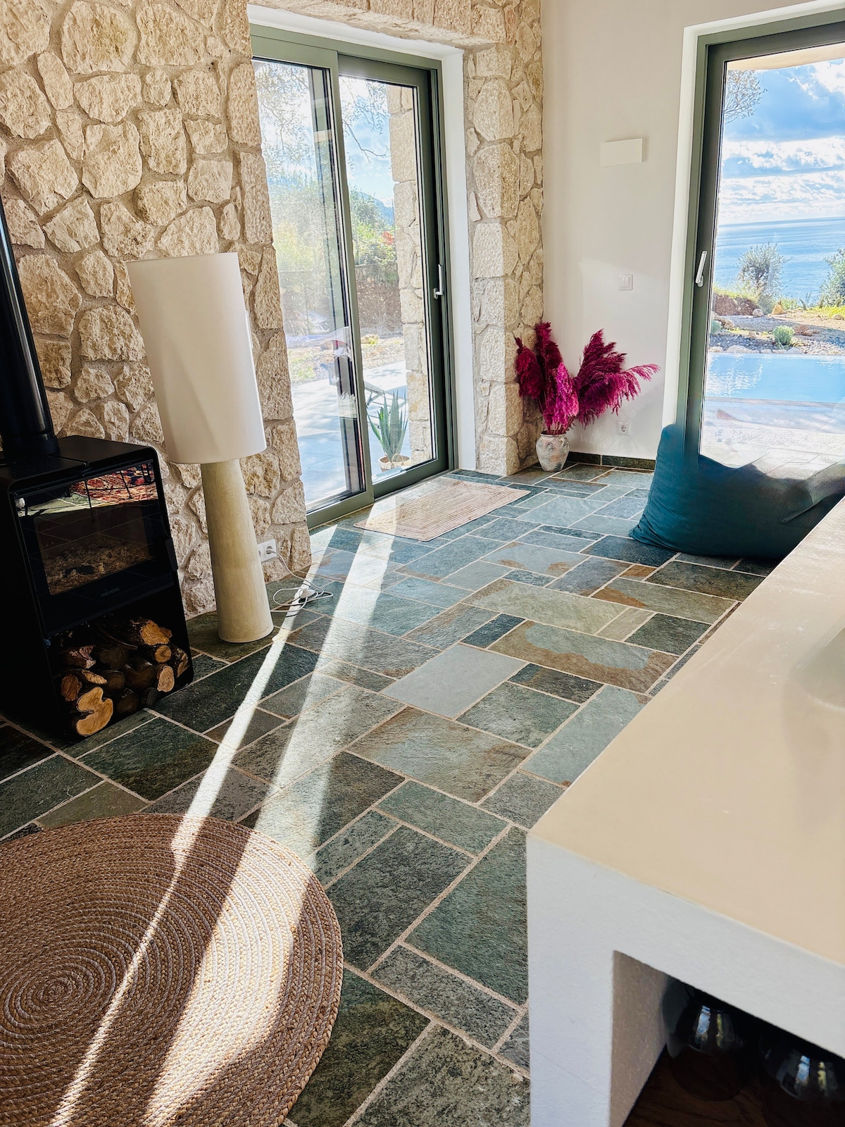 Enjoy having breakfast overlooking the ionian sea at the patio of sea la vie. Spacious house ideal for families , it's heartwarming nature vibe makes it a perfect couple's getaway too.Walking distance to restaurants, beaches , supermarket, public transit and anything else you needwithout having to rent a car. Free private parking just next to the house 2 min drive to main beach 2 min walk to closest beach 4 min drive to monastery Private jacuzzi with fantastic sea view, great for relaxing nights