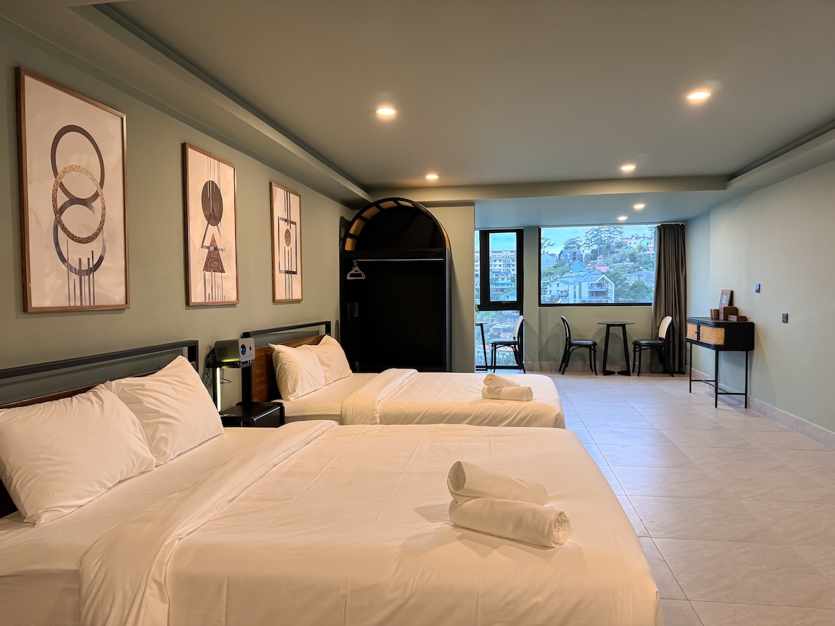 Yukkuri Boutique Condotel 2-bäddar lägenhet ligger i hjärtat av Da Lat, bara 1 km från nattmarknaden.., härifrån är det mycket bekvämt för dig att gå överallt i Da Lat stad, så detta läge är idealiskt. för dig att välja när du bor i Da Lat stad. Detta är en helt ny lägenhet inuti Yukkuri Hotel med modern design och fullständiga faciliteter, det är därför jag hoppas att du kommer att ha en bra vistelse i vårt rum.