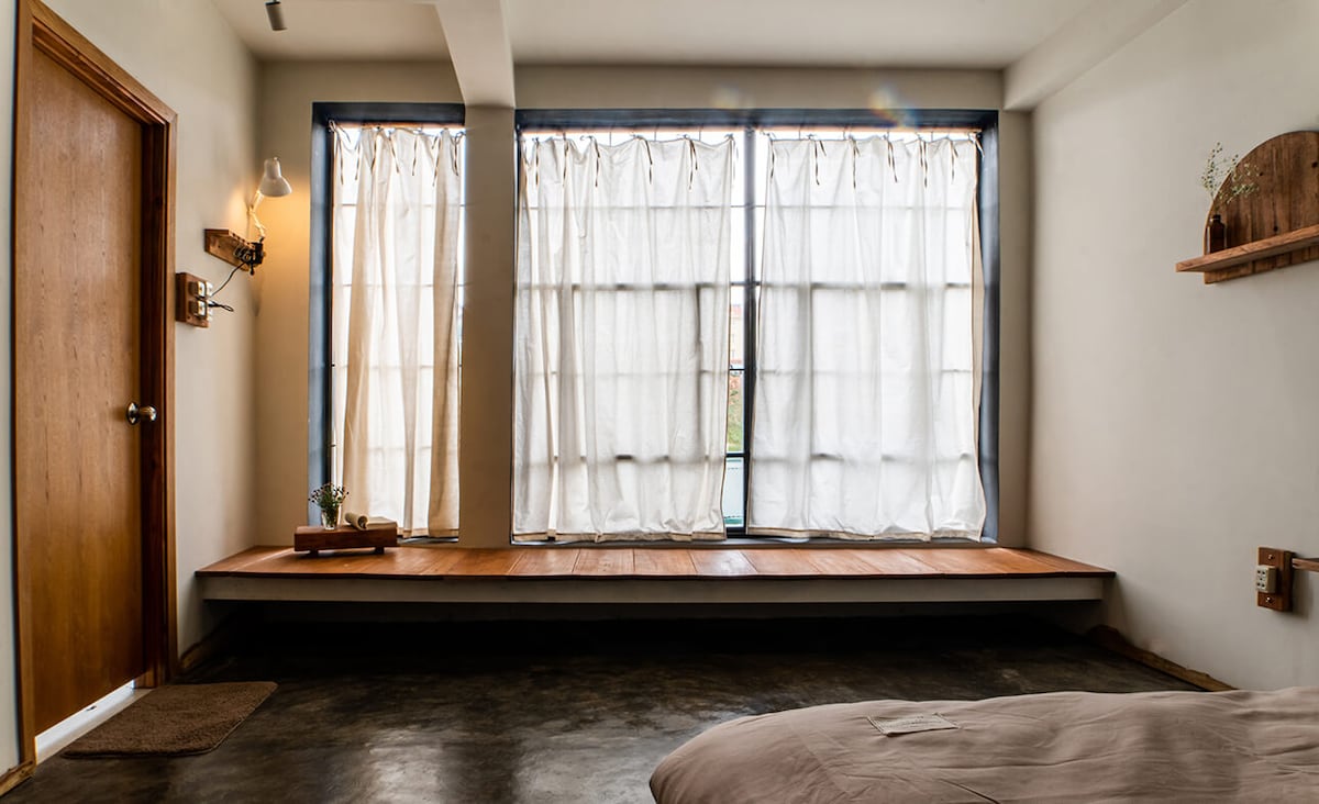Cham.dalat är ett mysigt värdshus på kullen beläget på Nguyen Sieu gata, Ward 7, bara 4,5 km från Dalat Central Market. Vi skulle vilja uppskatta naturlig skönhet och estetiken i saker som existerar och fångar "wabi-sabi" -andan. Rummet MAKI - på 2:a våningen, 16 m2 - är ett bra val för 2 personer. Alla rum är utrustade med 160 cm säng och komfortmadrass, fjäderkuddar och skrivbord. I priset ingår frukost med te eller kaffe för 2.