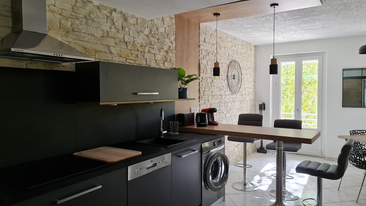 2 sovrum (dubbelsäng + 2 enkelsängar) Vardagsrum och utrustat kök Badrum med italiensk dusch Separat toalett Täckt terrass Förråd / tvättstuga med tvättmaskin och torktumlare Reversibel luftkonditionering Privat parkering Sänglinne och handdukar tillhandahålls Närliggande aktiviteter/butiker Boende 10 minuter från Cahors Motorväg 5 min Många turistattraktioner i närheten
