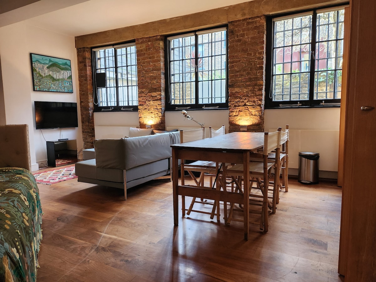 Arkitektoniskt designad tidigare viktoriansk handskfabrik i hjärtat av Kennington med sin egen unika stil. Denna fristående, bottenvåning 1 säng lägenhet är öppen planlösning och blandar modernism med mitten av århundradet stil. Utrustad med en ny king size madrass, 1 trucker bäddsoffa med en utdragbar enkelsäng, wifi smart tv netflix, galleri kök badrum. Lägenheten har fortfarande många av sina ursprungliga funktioner, inklusive bar tegel, stålbalkar och balkar.