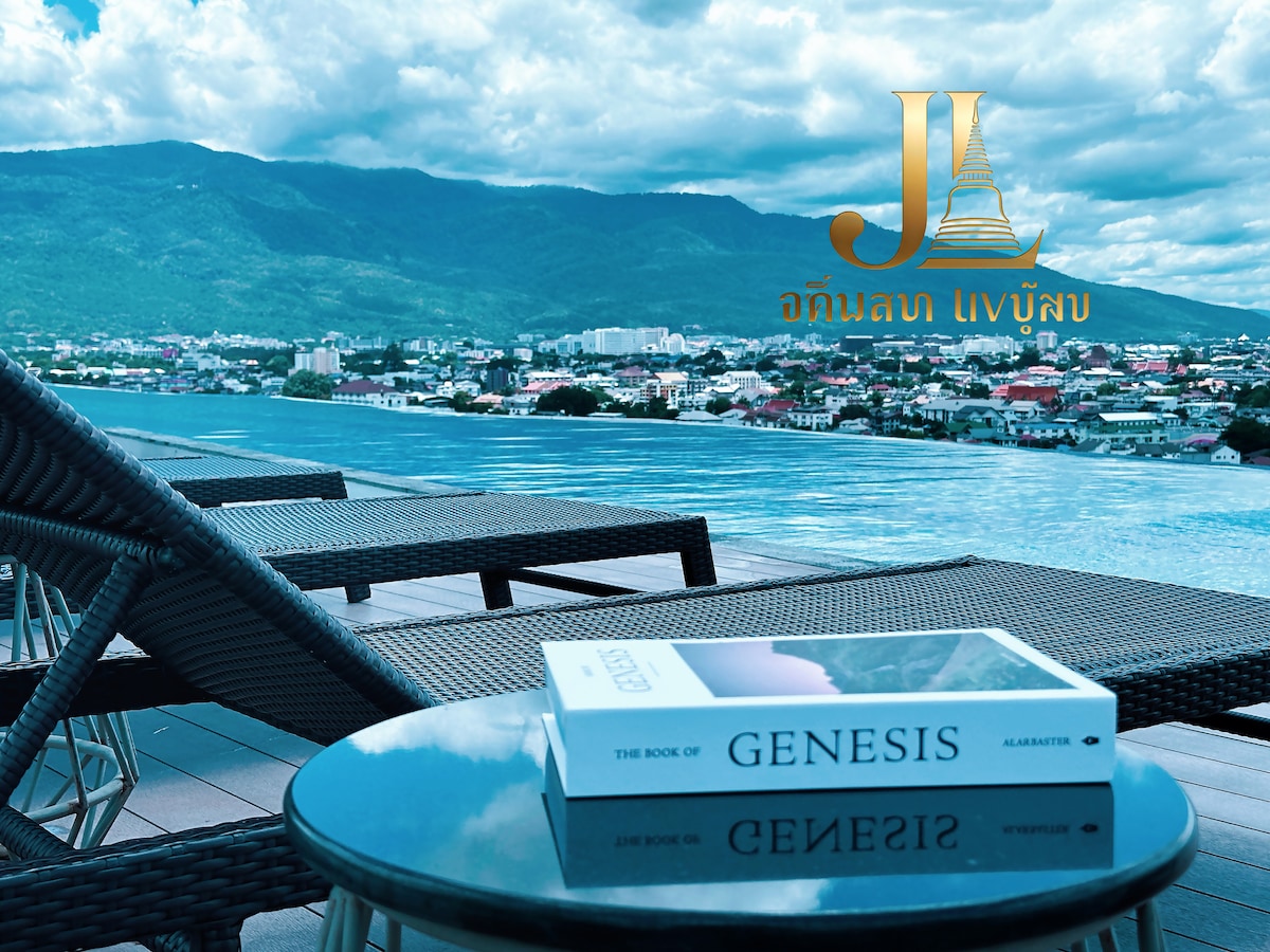 Astra sky river helt ny 3 säng lyxig Thailand längsta och vackraste oändliga pool + Suthep Mountain View vackraste solnedgång + delat kontor + nära den antika staden