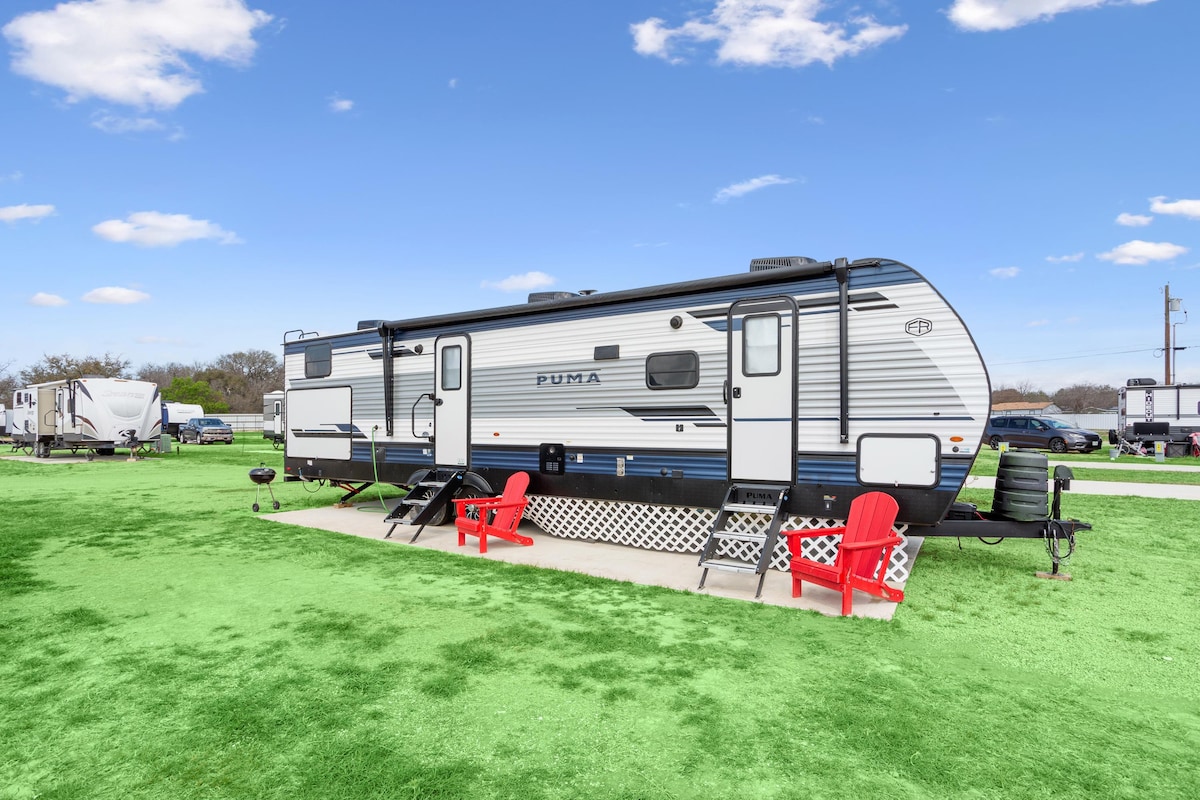 Varva ner på vår Central Texas Cattle Ranch eller bo här medan du tävlar på Rodeo Arena i Hamilton (30 miles bort). Ta ett dopp i vår pool, koppla av i bubbelpoolen och njut av lugn och ro medan du glamping i vår husbil. Din häst kommer att bo i vår rymliga hästgård med en liten öppen lada. Vita svanshjortar och vilda kalkoner kommer att äta från en matare nära husbilen. Vi erbjuder ett dussin färska ägg från vår flock. Observera att vi är 20 miles från en livsmedelsbutik.