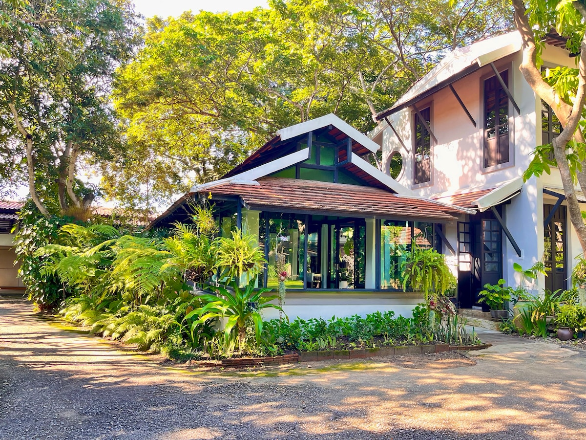 Escape to Villa Lacroix , a tranquil retreat located just 35 minutes from Chiang Mai Airport. Our farm offers a blend of nature and modern comfort, featuring en-suite bathtub for ultimate relaxation. A scenic maze garden and a fun kids’ playground to keep everyone entertained. Tree Café, serving a delicious food menu and refreshing cold-pressed juices, stunningflowers to explore. Perfect for families, couples, or solo travelers seeking a serene getaway