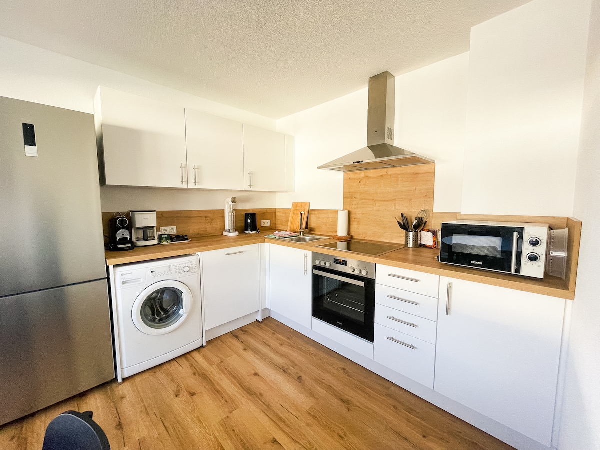 Välkommen till Immo-Vision & this wellness dream home at the Aggertalsperre! Denna takvåning kombinerar lyx, komfort och natur: • Panoramautsikt • Hälsooas med bastu och badkar • Moderna bekvämligheter • Terrass med jacuzzi, grill och sittplatser • Smart-tv • 2 sovrum med mysiga 1,80 dubbelsängar • Bäddsoffa med stor sovplats • Fullt utrustat kök med helautomatiska kaffemaskiner • Direkt tillgång till vandringsleder och naturupplevelser • Hiss till takvåning