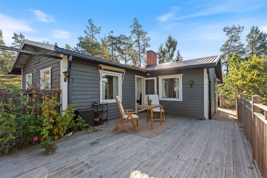Denna 130 år gamla stuga är ca 90 m2. Det är modernt, men möblerat på ett sätt som ger en mysig atmosfär. Bottenvåningen; ett kök och matsal med en klassisk vedspis, ett vardagsrum och ett badrum. Din egen trädgård och ett stort trädäck att sola eller grilla. Vackert område, en kristallklar sjö för bad 200 meter bort, som gränsar till ett naturreservat för att njuta av naturen. Havet vid bryggan ~ 700 m. 30 min till Stockholm med Waxholmsbåt, buss eller bil. Skärgården är åt andra hållet.