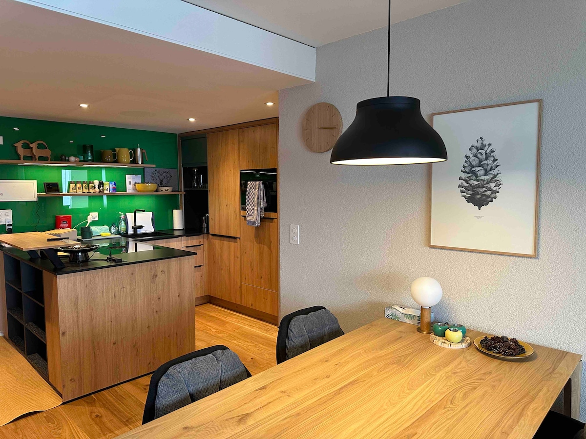 Mysig, ljus och kärleksfull. I denna nästan 50 m² stora takvåning känner du dig direkt bekväm. Den vackra utsikten över bergen och den fantastiska atmosfären i naturen gör att du snabbt kan ta en paus. Särskilt mysigt är det många varma trä, naturmaterial och sömnen i Hüsler-Nest. Det mångsidiga utbudet i regionen lockar också utomhus och lämnar inget övrigt att önska. Lägenheten är lämplig för upp till 2 vuxna och 2 småbarn upp till skolålder.
