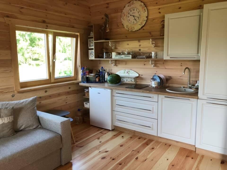 8 minuters promenad från havet - alpstuga för upp till 6 personer med möjlighet att hyra ett jacuzzi med färgglada lysdioder och bastu (kvastar). En hall med ett utrustat kök (induktionsspis, handfat, diskmaskin, tallrikar). 1 sovrum på 1: a våningen med en dubbelsäng 160 cm bred, 1 sovrum - i en takvåning - med en ergonomisk 160 cm bred, 18 cm tjock Napsie-madrass. Toalett med dusch. Stuga wi-fi, öppen spis och luftkonditionering/värmepump. Vid stuggrillen, hängmatta, studsmatta i området. Parkering. Välkomstvärdar.
