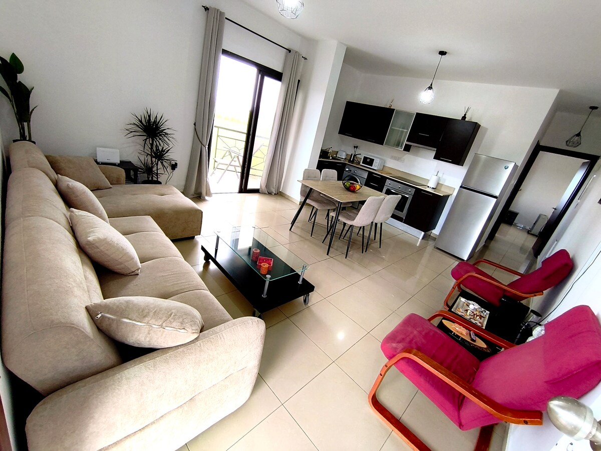 Complimentary self-serve breakfast Minutes to Larnaca Airport Good for early flights / late arrivals Free parking Quiet area Relaxing your eyes by the valley, pool and sea view and Enjoy a complimentary self-serve breakfast with coffee/espresso, tea, oatmeal, cereal, fresh fruit, eggs, wheatmeal biscuits, cheese and evaporated milk in capsules. For security purposes, the property has CCTV cameras in the exterior areas only (entrance). There are no cameras inside the apartment.