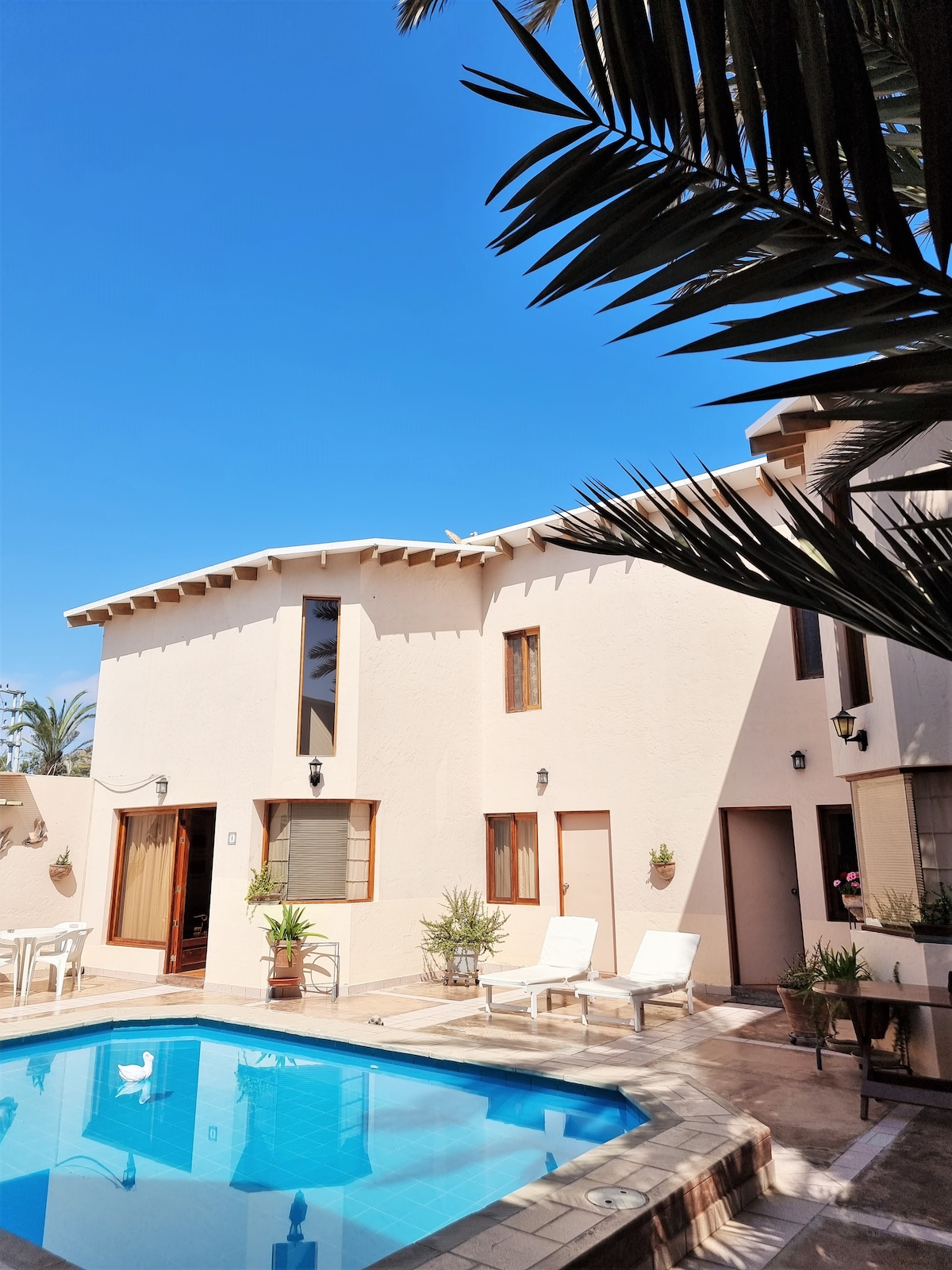Modernt och ljust lyxhus med pool vid stranden, bara några steg från havet. Hushållerska och privat kock ingår! Beläget i ett av de vackraste naturreservaten i Sydamerika (Paracas) — en strandoas mitt i öknen, omgiven av en nationalpark och århundraden av förinkahistoria, och 1 timme från Nazcalinjerna! 3 rymliga sovrum med eget badrum och garderob, TV-rum, modernt kök, tvättstuga och ett sovrum för servicepersonal, en sann pärla!