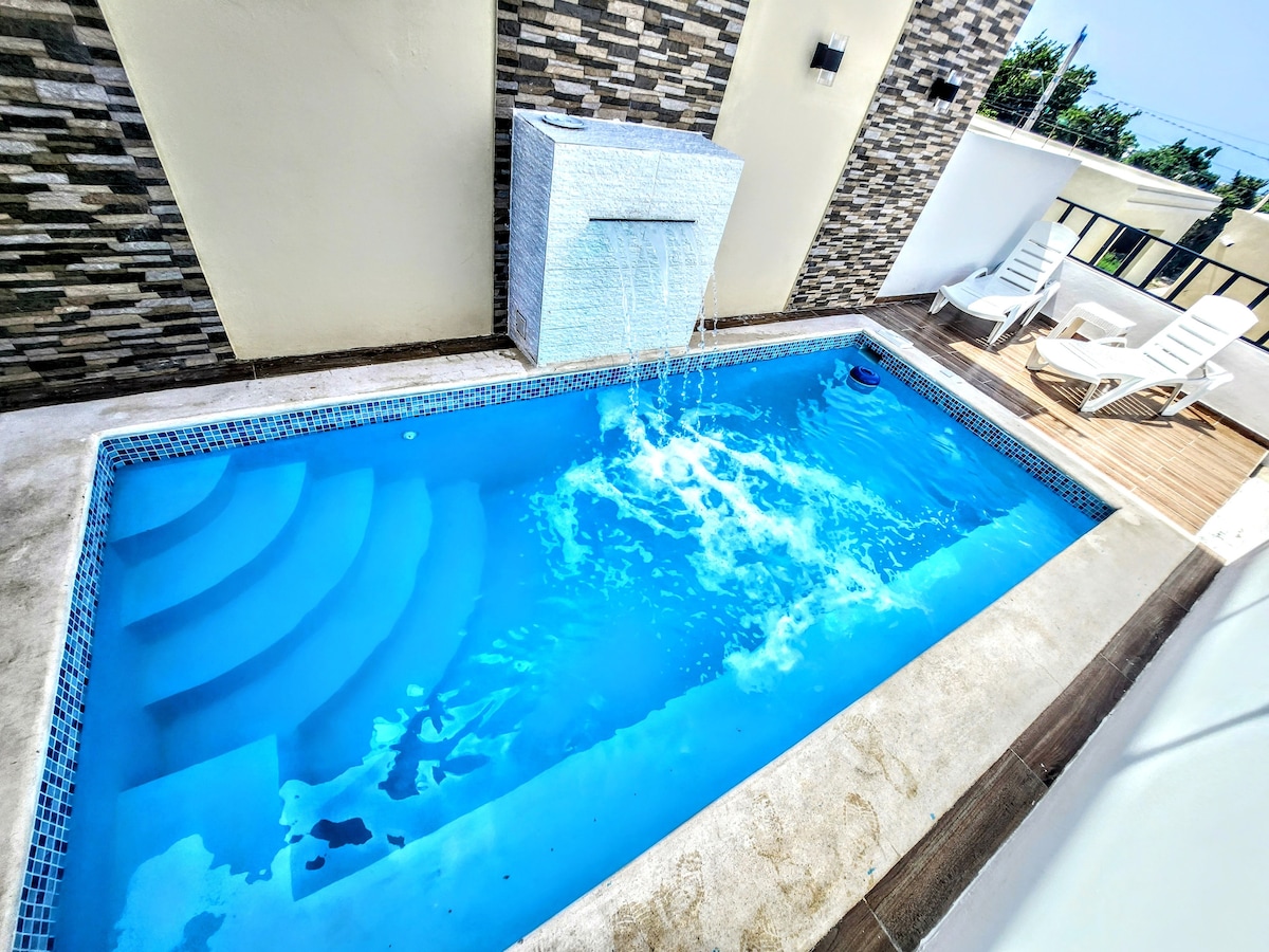Välkommen till detta vackra semesterboende i Puerto Plata, beläget i ett vänligt grannskap med fantastisk utsikt över bergen. Perfekt för familjer som letar efter lugn, rymmer denna 3 sovrum juvel upp till 6 personer och har egen privat pool och grill. Den eleganta designen erbjuder ett öppet koncept, högt i tak och rikligt med naturligt ljus. Njut av det härliga utomhusutrymmet med en vacker terrass, perfekt för avkoppling i en pittoresk miljö.