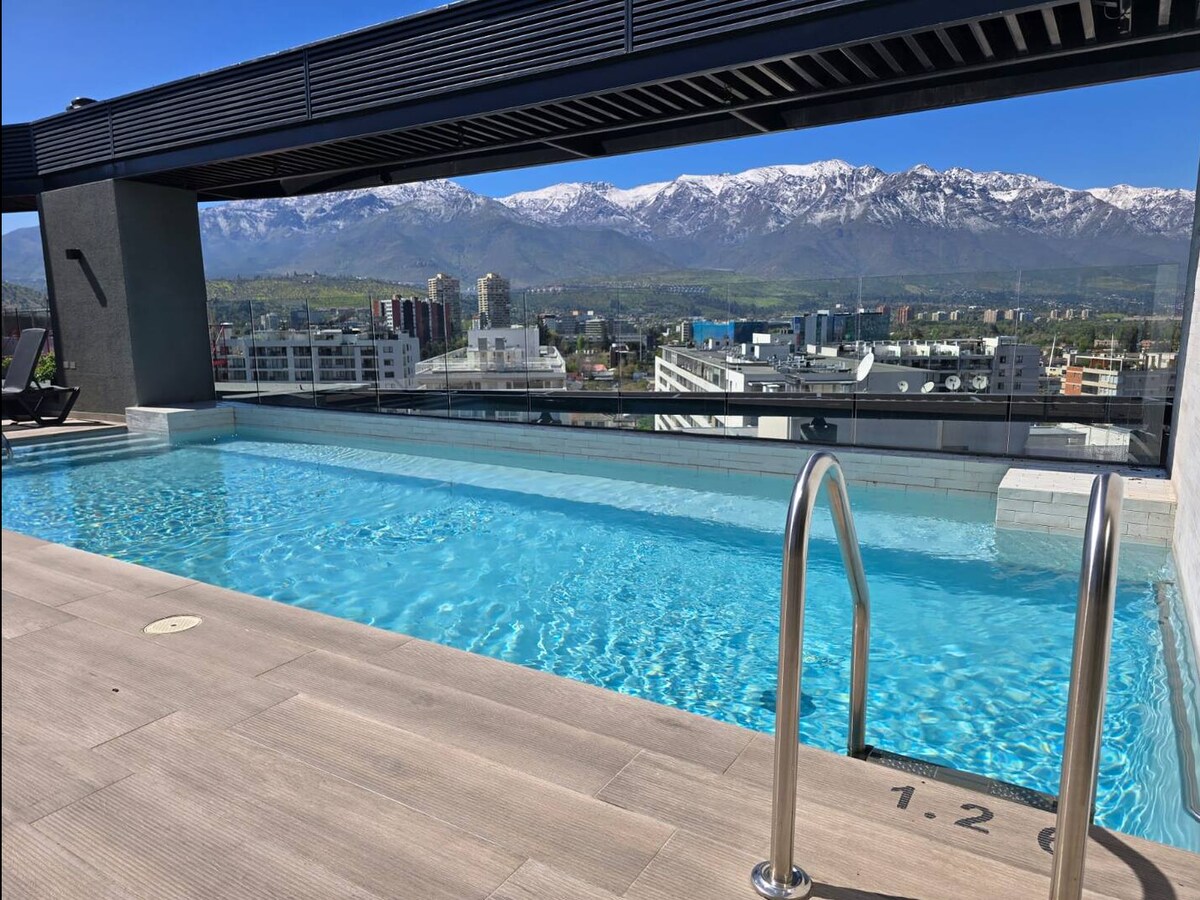 Ny modern studiolägenhet i Las Condes med egen balkong och fantastisk utsikt över Anderna, luftkonditionering och tvättmaskin i lägenheten. Vikbädden förvandlar utrymmet till ett bekvämt vardagsrum. Byggnadens bekvämligheter inkluderar pool, gym, tvättstuga och dygnet runt-tillgång. Beläget i ett av Santiagos säkraste områden, nära köpcentra, restauranger och skidorter (45 min). Perfekt för affärs- eller fritidsvistelser.