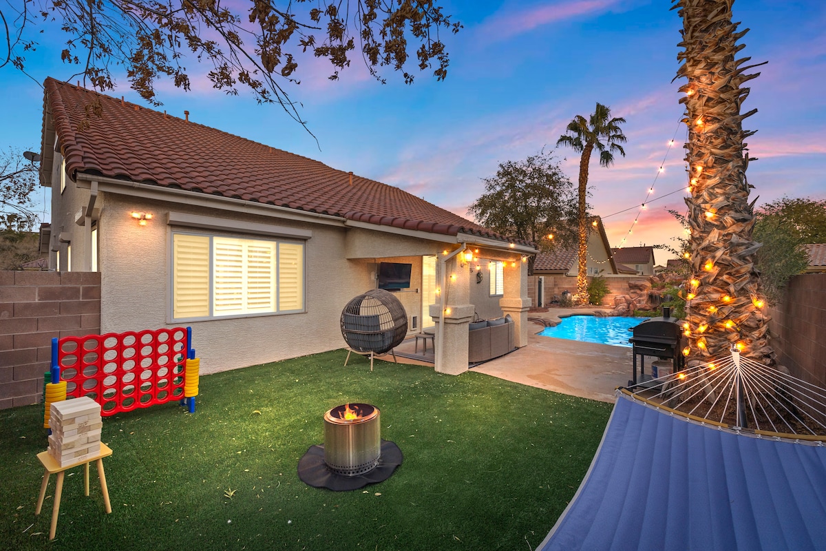 Freshly renovated Las Vegas home away from home with a resort pool oasis, custom fire pit gardens, new modern Clearwater jacuzzi with over 100 jets and water features for you to relax and enjoy, an outdoor kitchen BBQ patio area, and a fun outdoor game area! This single family home with a casita is located minutes from outdoor adventures, strip excitement, and beloved local attractions. Enjoy a relaxed modern Bohemian style with thoughtful touches to ensure a comfortable and memorable stay.